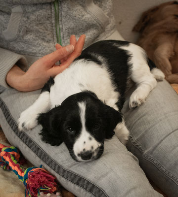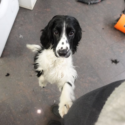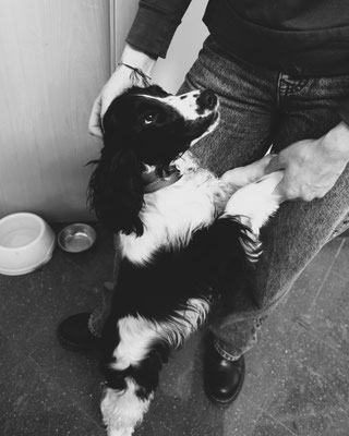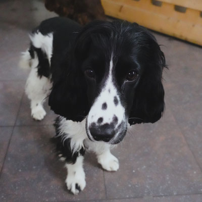 Feli è la figlia della nostra Mila. È nata il 15 gennaio 2023 insieme ai suoi 5 fratelli a casa nostra. Feli è una piccola simpaticona bianca e nera. È eccezionalmente piccola per una cagna cocker spaniel e sembra ancora una cucciola. A volte Feli mi accompagna anche nel mio lavoro di addestratrice cinofila. Vivere con Feli e Mila e osservare come una mamma cane addestra quotidianamente il suo cucciolo e gli insegna le buone maniere mi ha permesso di ampliare ulteriormente le mie conoscenze sulla comunicazione tra cani.